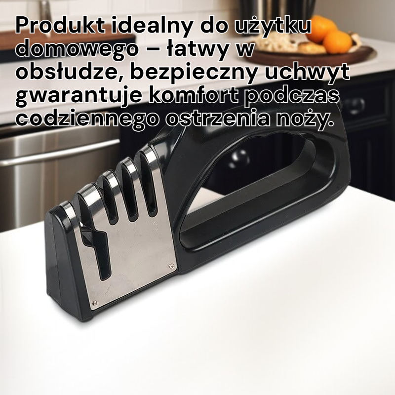 ● Ostrzałka do noży z czterostopniowym systemem ostrzenia i diamentową powłoką zapewnia profesjonalną ostrość każdemu kuchennemu nożowi. ● Produkt idealny do użytku domowego – łatwy w obsłudze, bezpieczny uchwyt gwarantuje komfort podczas codziennego ostrzenia noży. ● Wysokiej jakości materiał diamentowy oraz solidna konstrukcja zapewniają trwałość i długą żywotność ostrzałki nawet przy częstym użytkowaniu. ● Wielofunkcyjna ostrzałka nadaje się do różnych rodzajów noży kuchennych, w tym noży szefa kuchni, do chleba i nożyków do obierania.